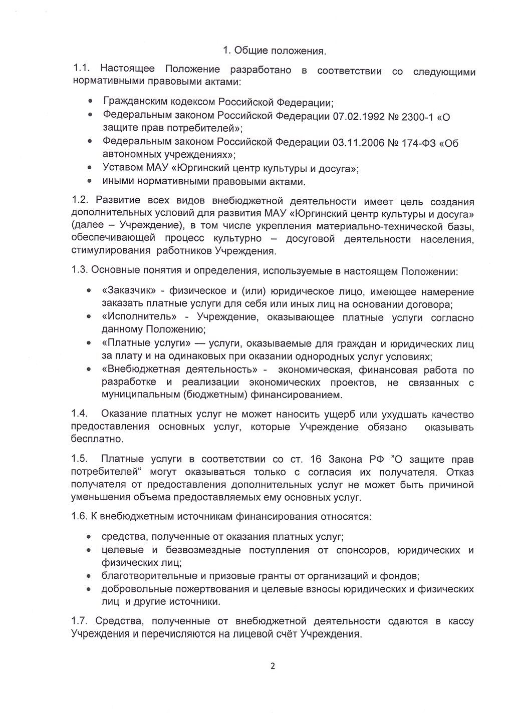 Положение о внебюджетной деятельности Муниципального автономного учреждения «Юргинский центр культуры и досуга»