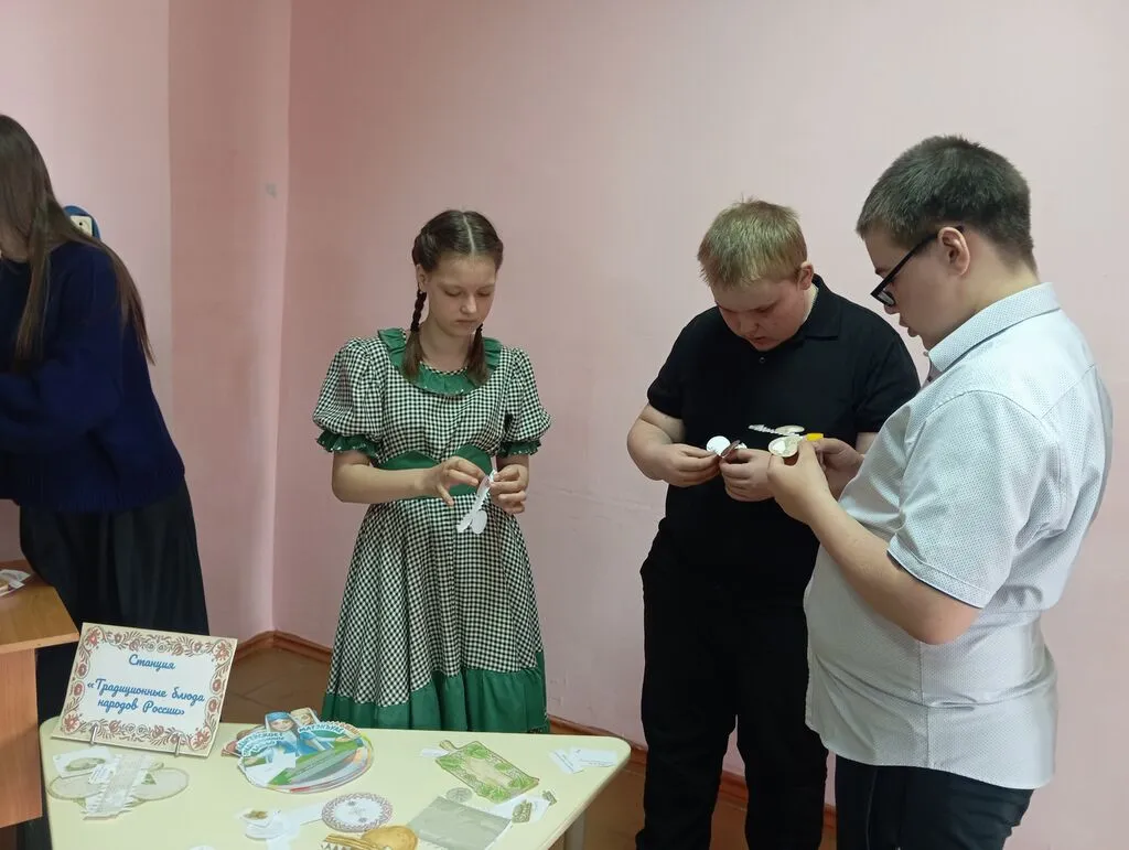 Участники квеста прошли по нескольким тематическим станциям. На станции «Куклы народностей России» они познакомились с традиционными куклами, отражающими культуру и быт различных народов страны, а также проявили свои творческие способности, создавая поделки из заранее подготовленных шаблонов.